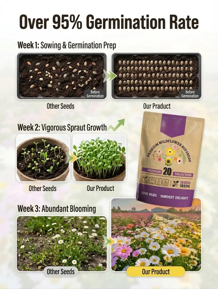 🌿Germinates in 7 days, blooms in 30 days – cold & heat resistant, 🌸365 days of flowering!