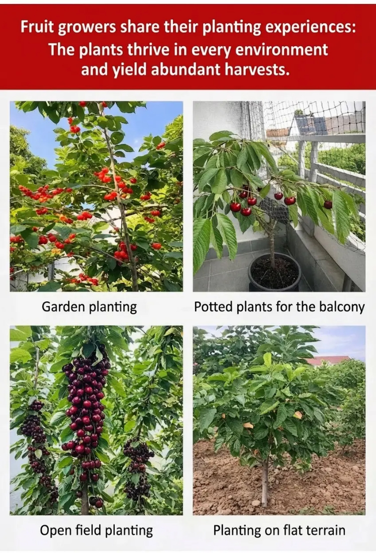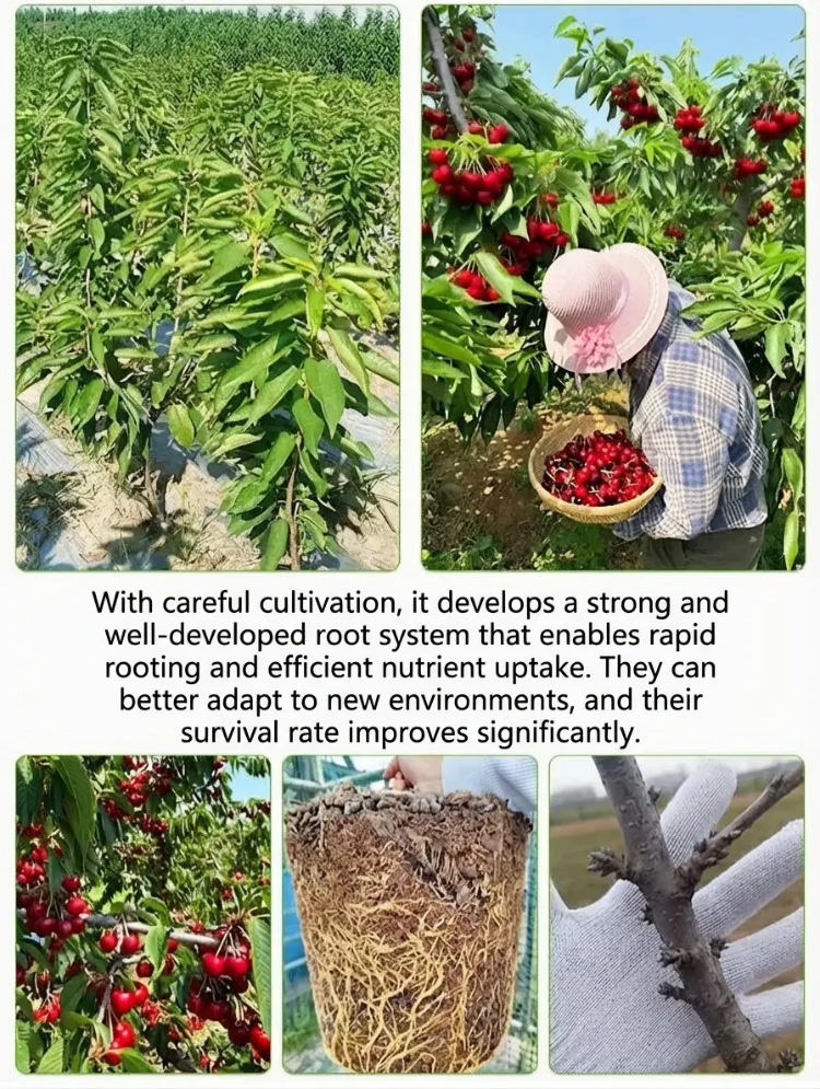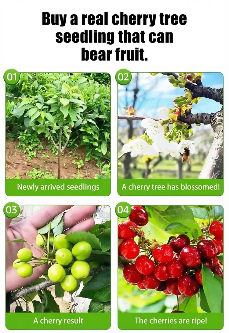【No fruit? Full refund – guaranteed.】🍒Carefully selected for strong growth, early fruiting, and impressive productivity, this cherry tree is beginner-friendly and easy to grow. Its compact dwarf shape makes it perfect for balcony pots, patios, and backya