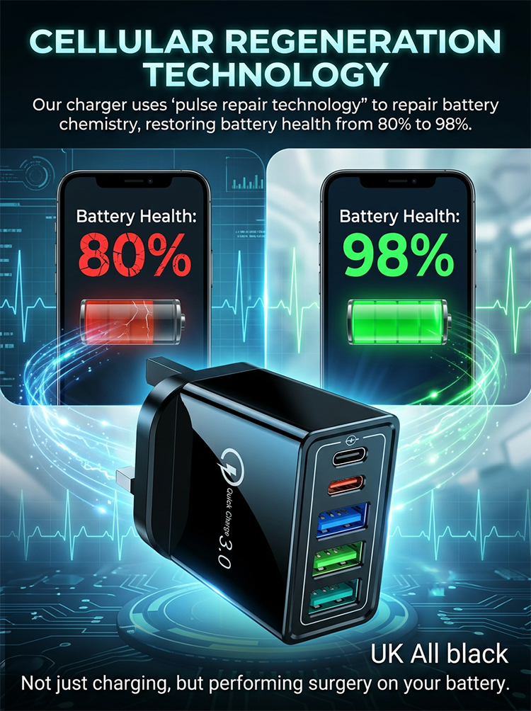 The world’s first smart LifeExtender – 🔌Breaking Free of "Planned Obsolescence",⚡Charge 4 Devices Simultaneously, Compact for Travel & Daily Use